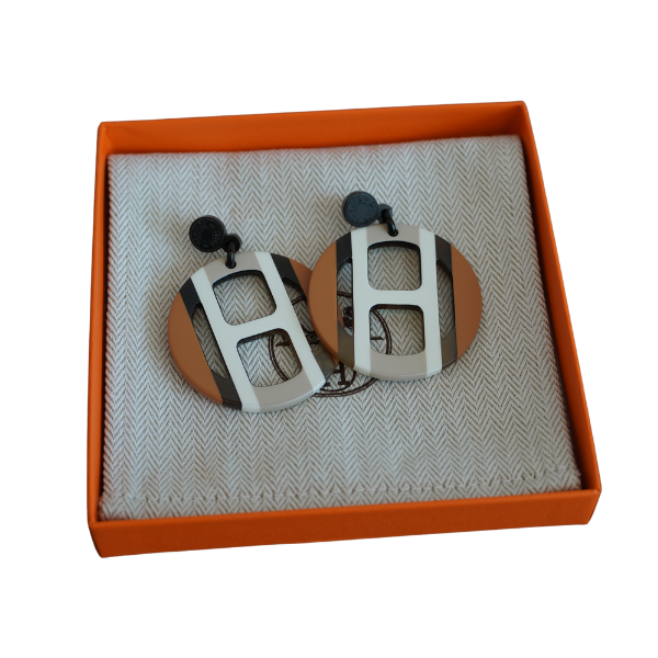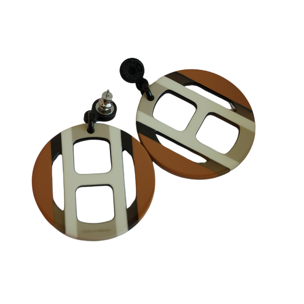 Material: Natural Horn with Glossy Coating Color: Elegant mix of black, white, and brown Details: Circular design featuring the iconic cut-out H, signature of Hermès Condition: 100% Brand New, Unused Accessories: Original Hermès Box + Dust Bag + Care Booklet