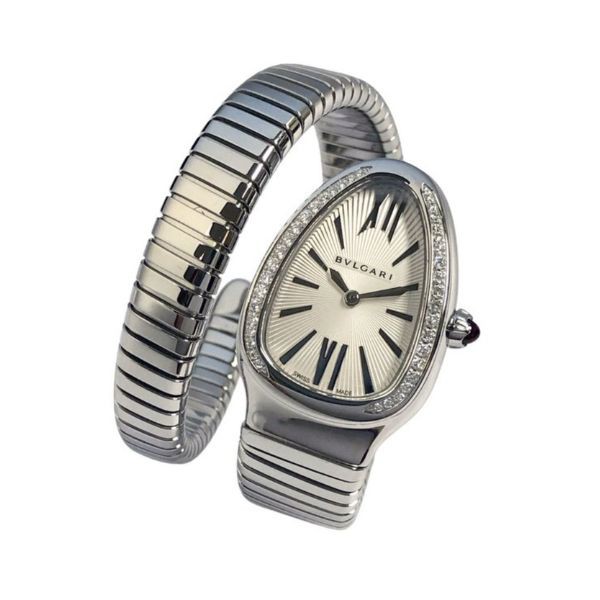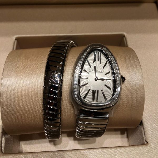BVLGARI Serpenti Snake Steel and Diamond Wrist Watch – Small Condition: Brand new Size: Small Selling Price: 36,000 QAR Accessories: Full set