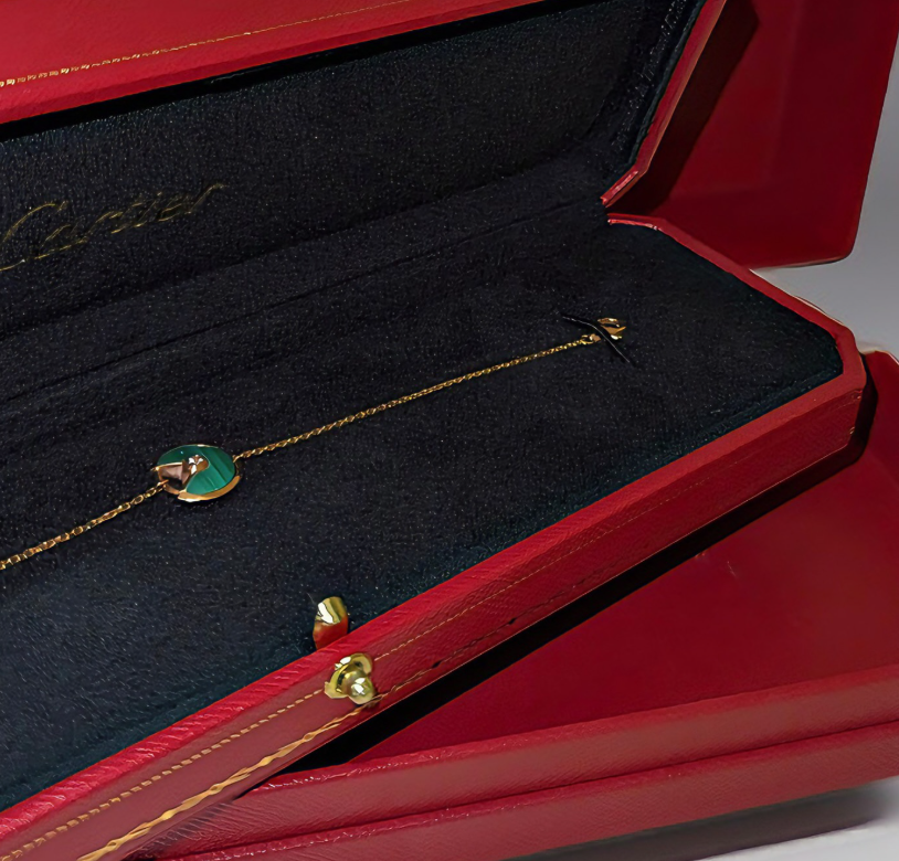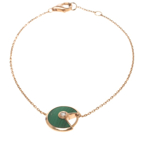 Product: Bracelet Material: Rose gold, Malachite Condition: Gently used Purchase Price: 7,500 QAR Selling Price: 5,000 QAR Accessories: Box and Pouch