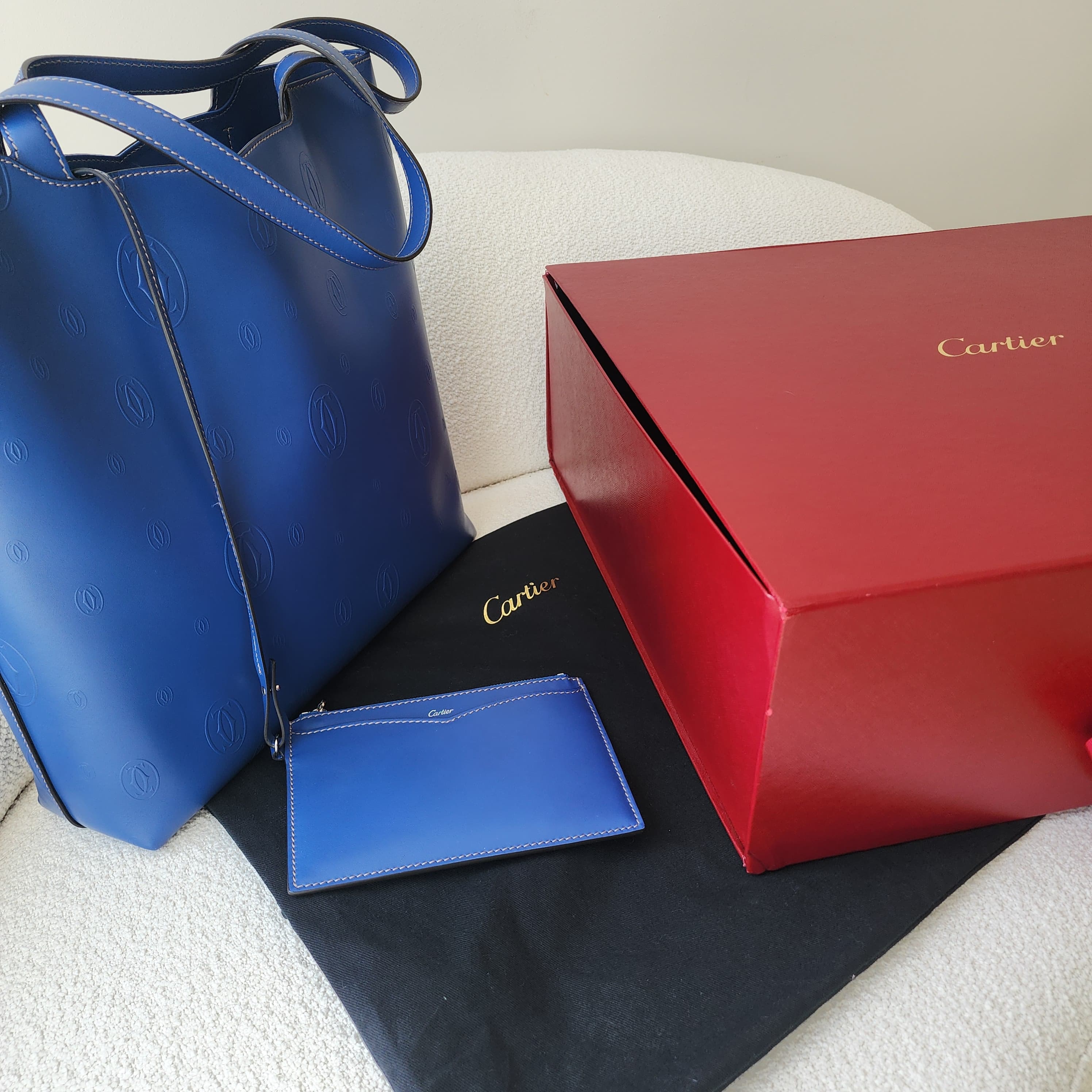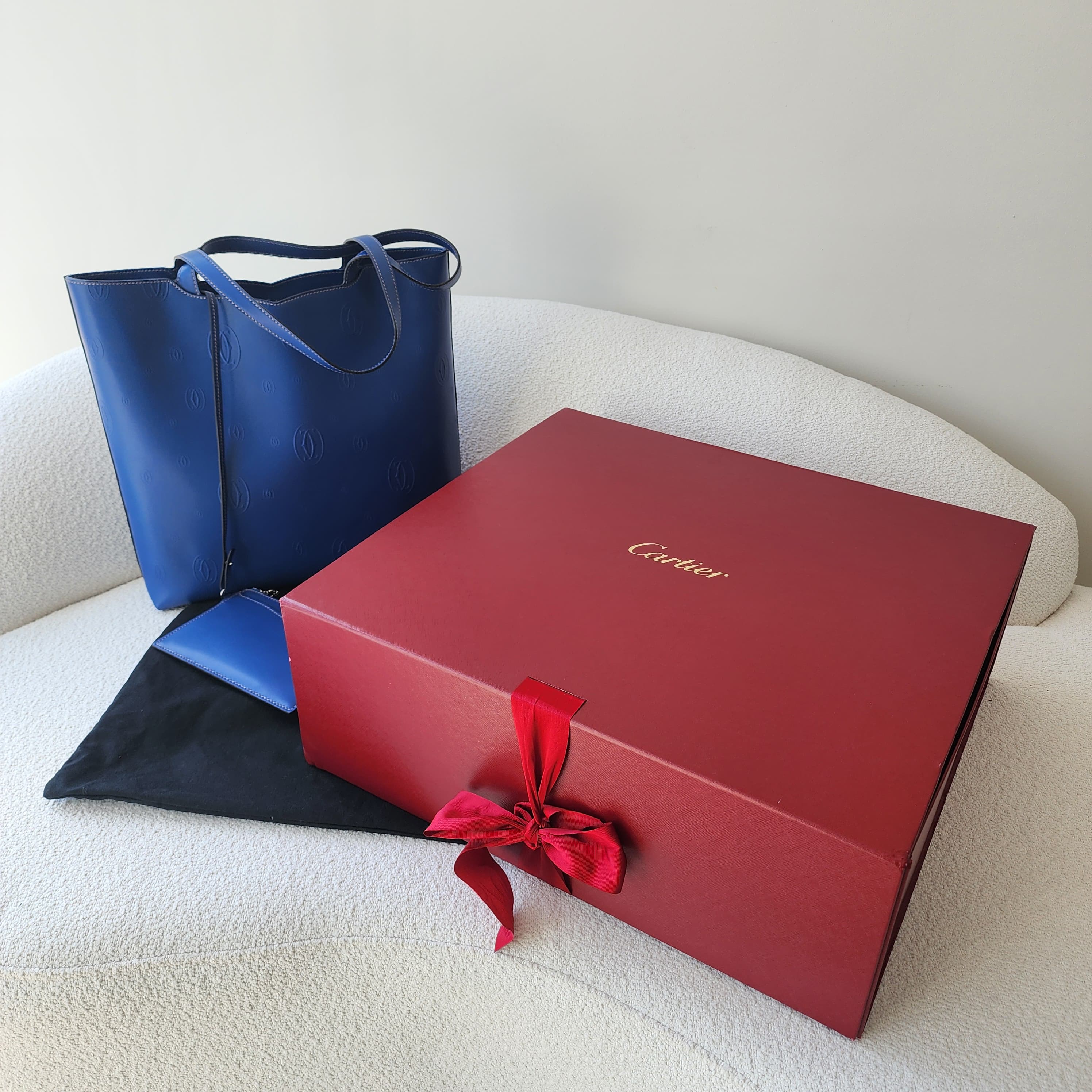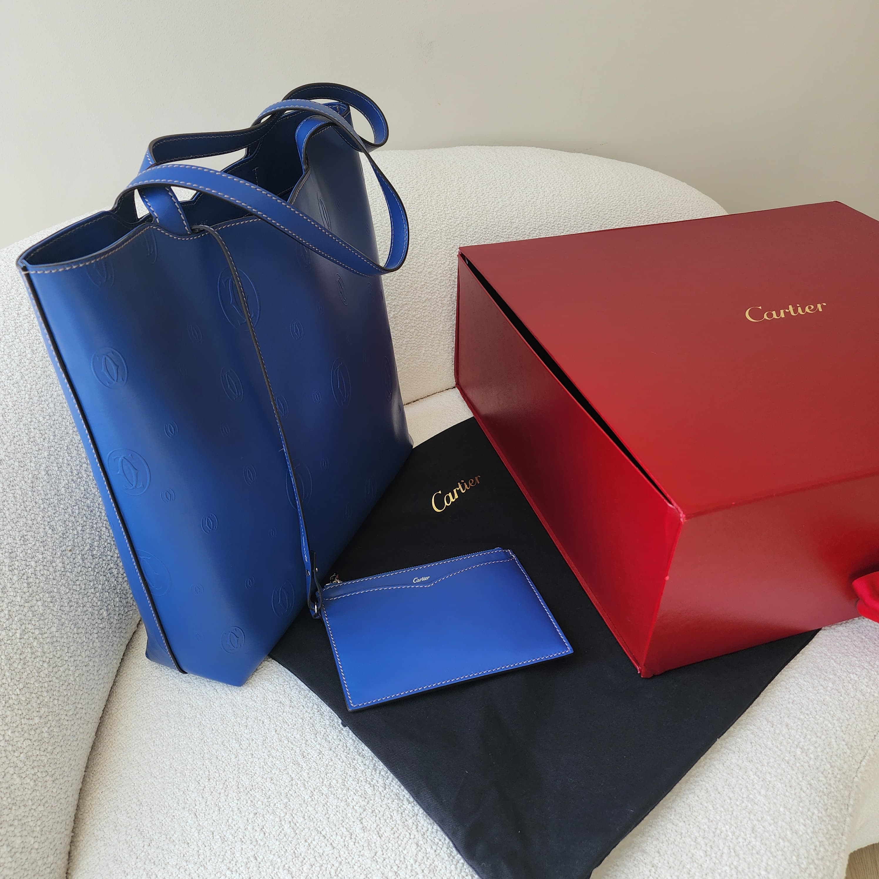 Blue calfskin leather with pouch