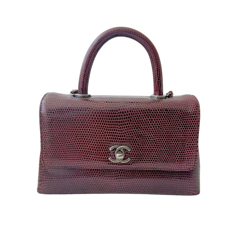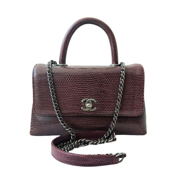 CHANEL Lizard Small Coco Handle Flap Burgundy Condition: Pre-owned