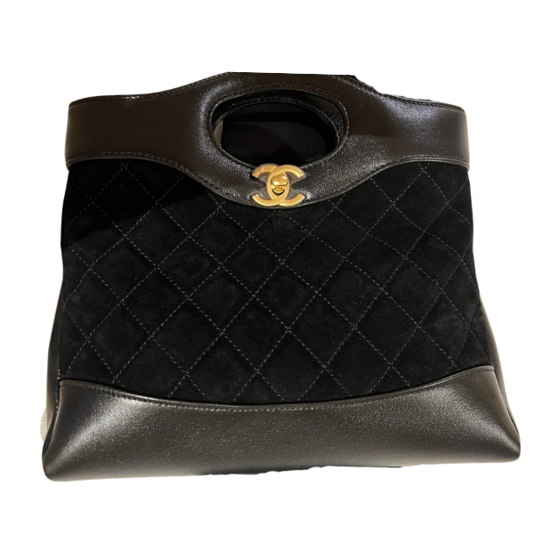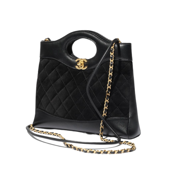 Chanel 31 Mini Shopping Bag Material: Suede Calfskin, Lambskin, and Gold-Tone Metal Color: Black Condition: Brand New