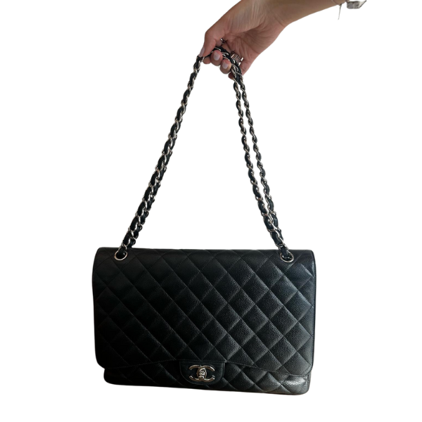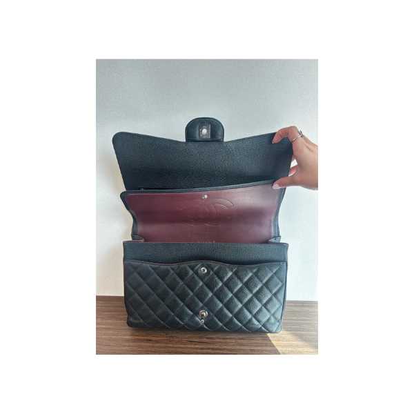 Chanel Black Quilted Caviar Jumbo Classic Double Flap Bag Silver Hardware Condition: Excellent Purchase Price: 46,270 QAR