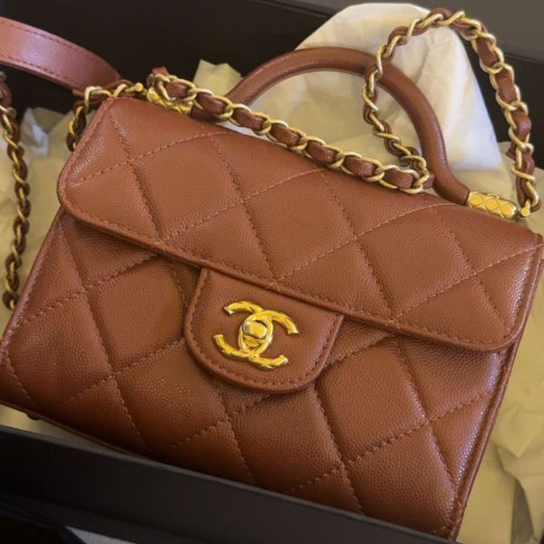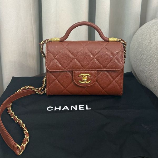 Chanel Seasonal Mini Flap with Top Handle – Brown, Caviar Leather • Condition: Brand New • Original Price: 26,000 QAR • Selling Price: 18,000 QAR • Full Set