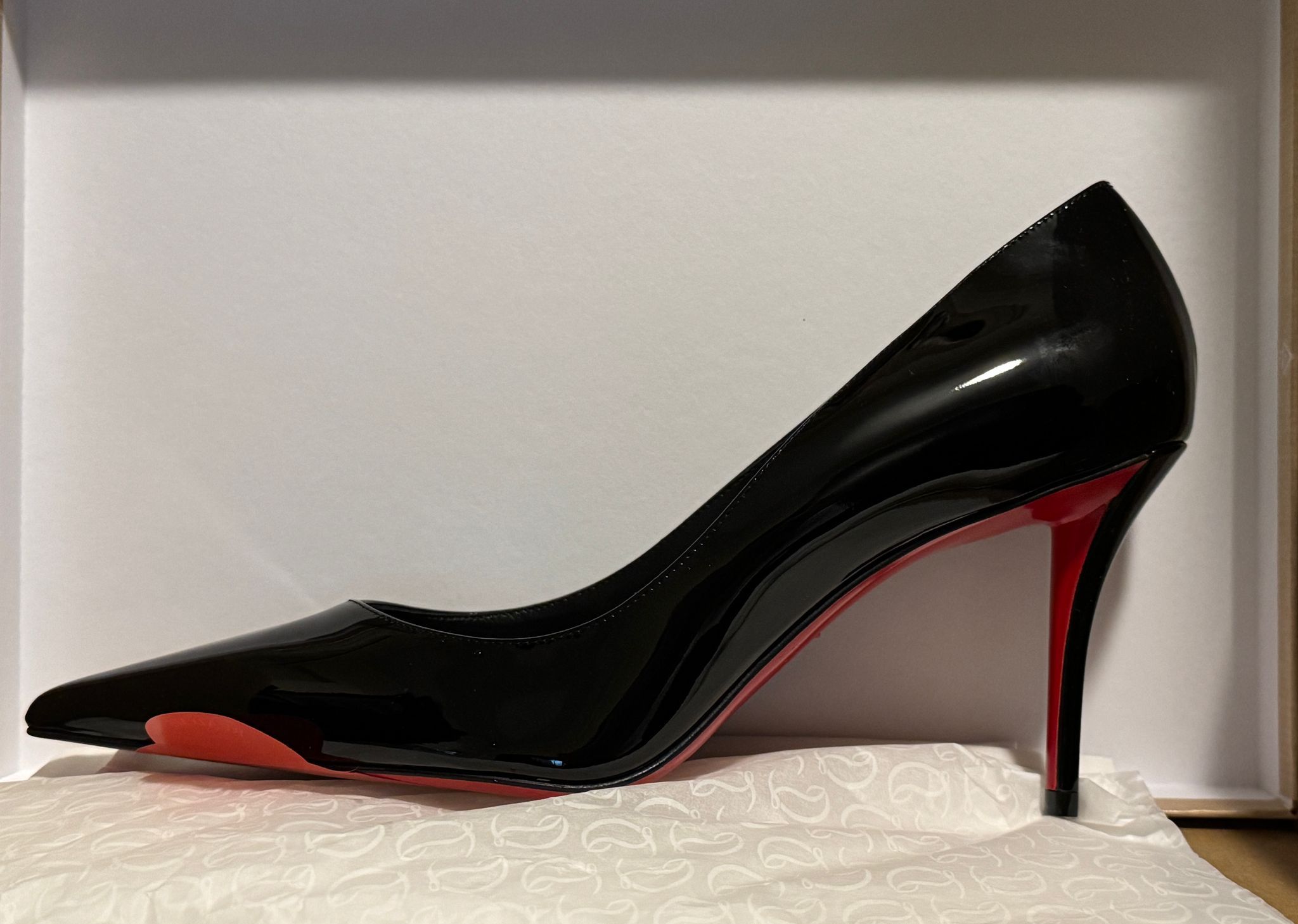 Christian Louboutin Heel Height: 80 mm Patent Leather – Black Color – Brand new, with full accessories Purchase Price: 3,650 QAR Selling Price: 3,100 QARBatra provides authenticity verification a