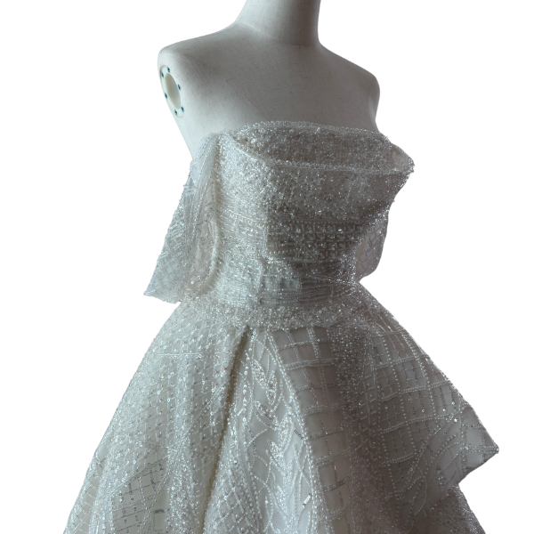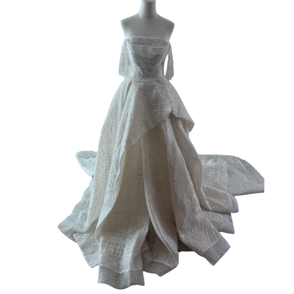 NS Sposa Dress Price: 40,000 QAR Size: 36–38 (adjustable with back lacing) Condition: Like new — worn for only 3 hours Accessories: Dust bag + separate petticoat