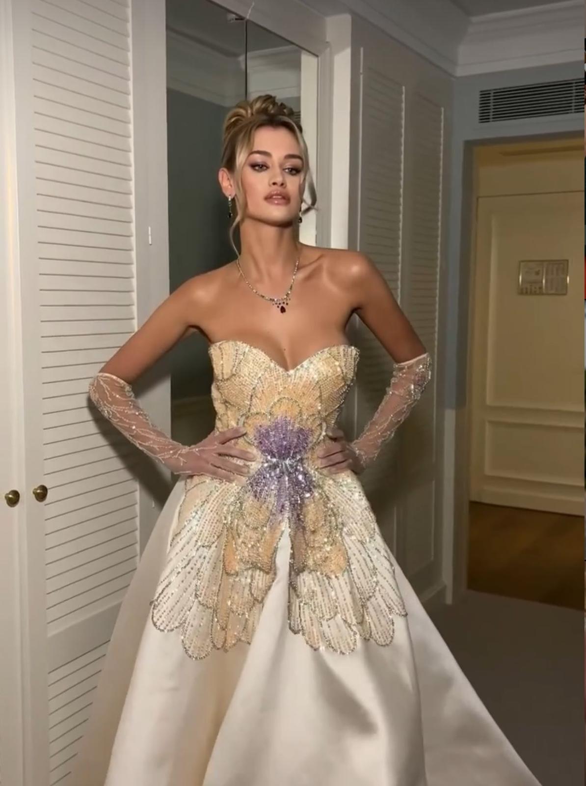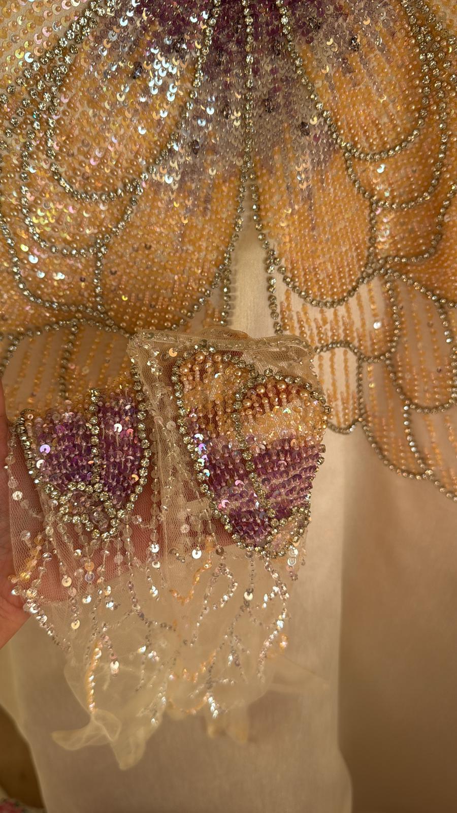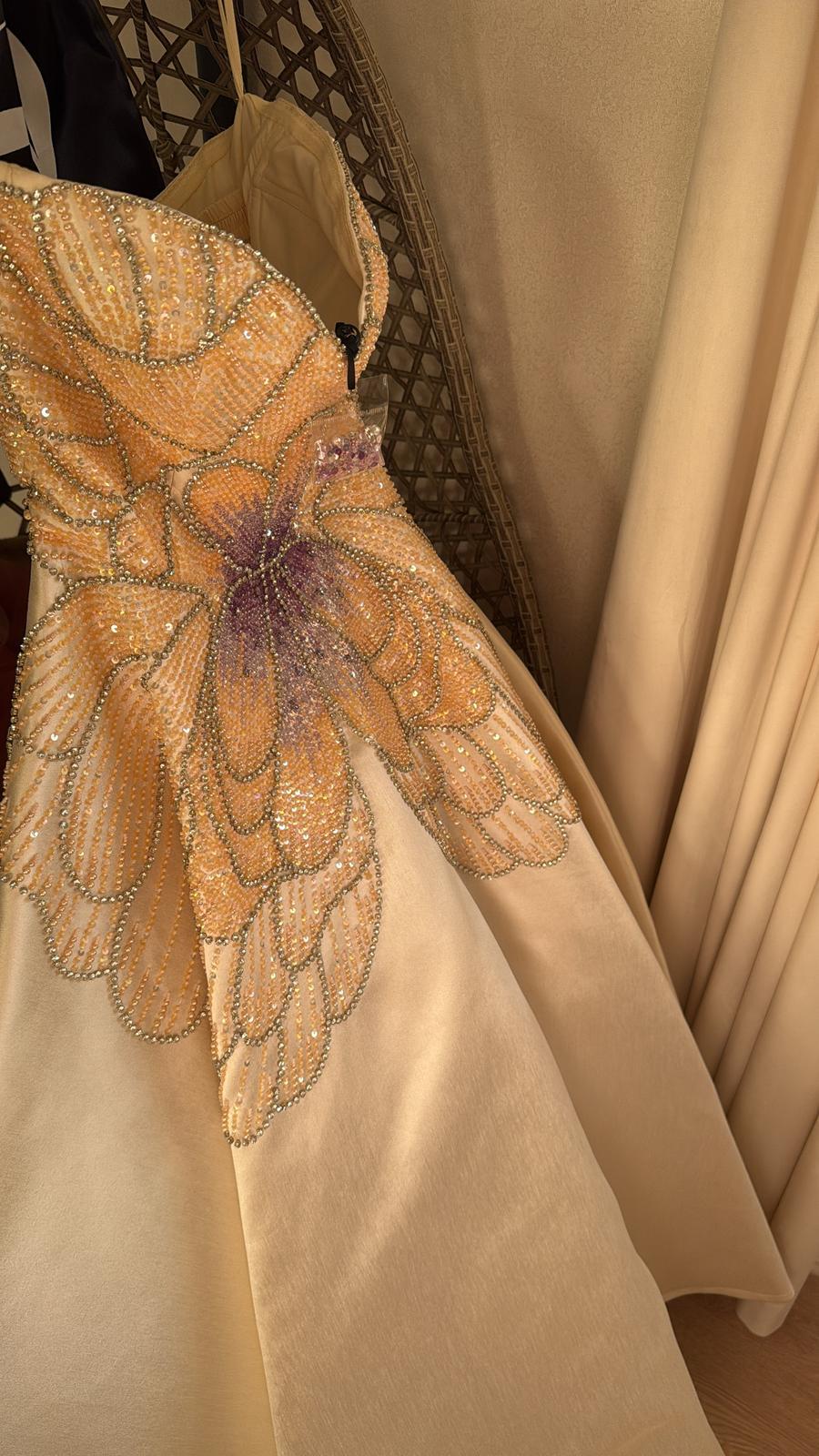 Design: Waad Al Aqeeli Size: S Condition: Excellent, worn for only 4 hours Purchase price: 6,300 QAR Selling price: 4,500 QAR Accessories: Dust bag, hanger, gloves, glove bag, invoice, and dress documents Batra offers authenticity verification and international shipping. Please contact us before purchasing to ensure a secure transaction.
