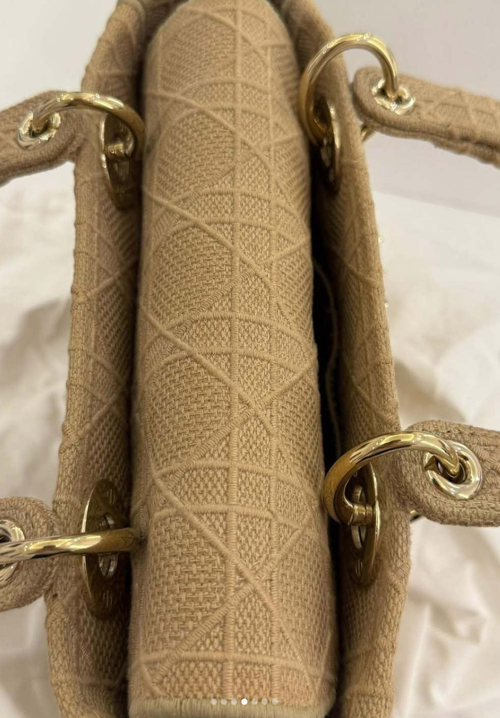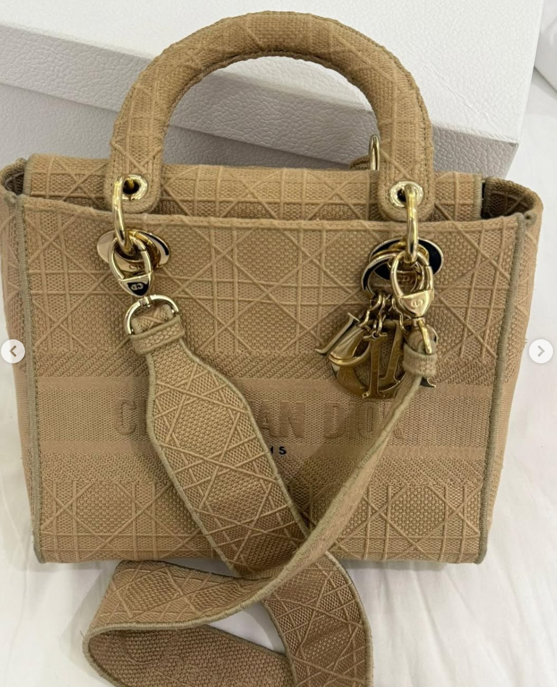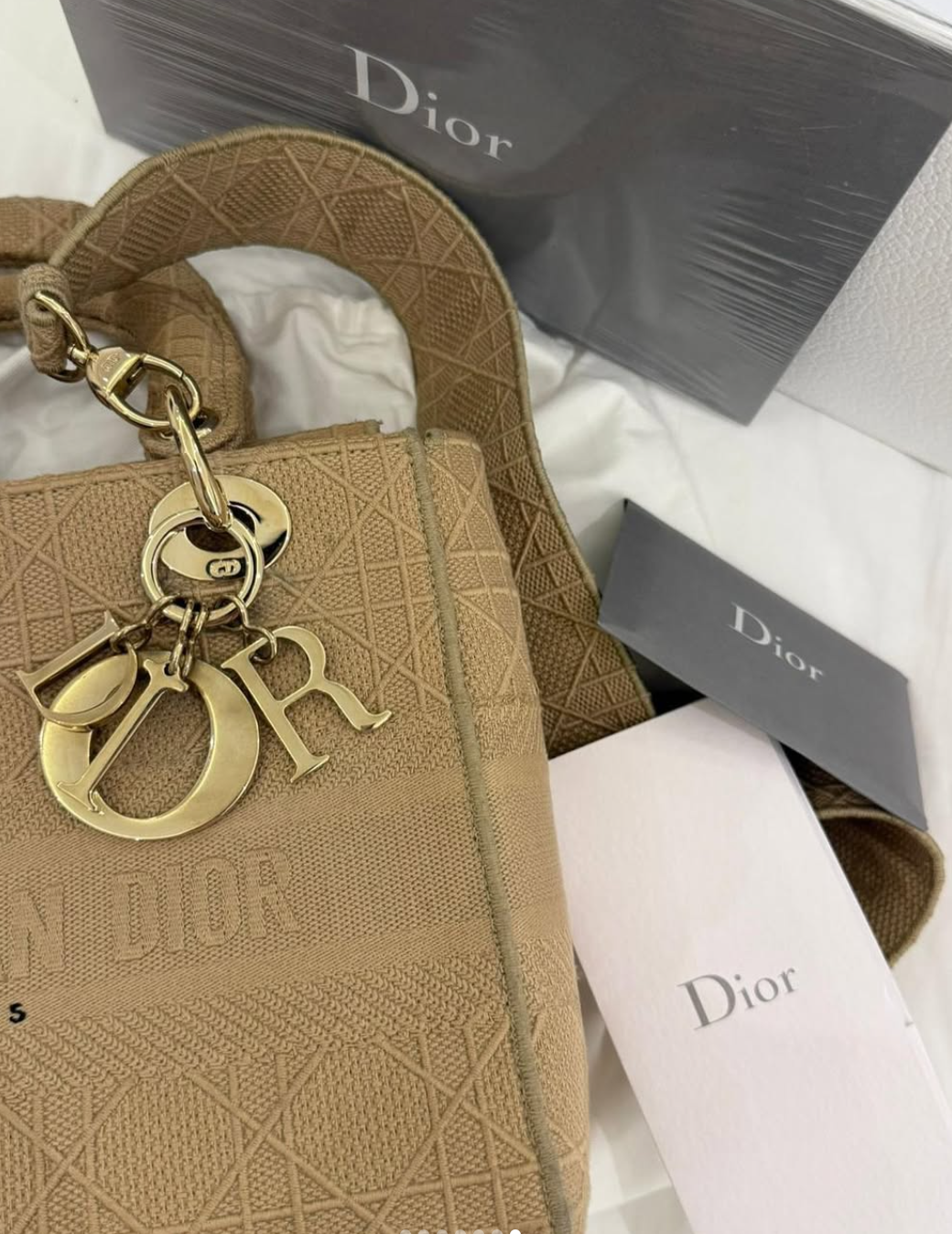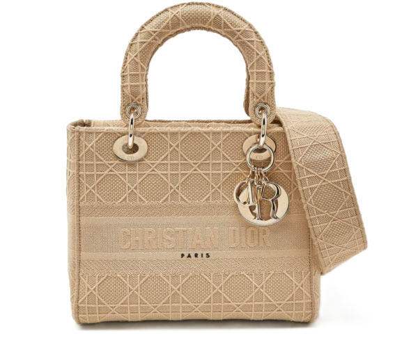 Dior Beige Cannage Embroidered Canvas Medium Lady D-Lite Tote