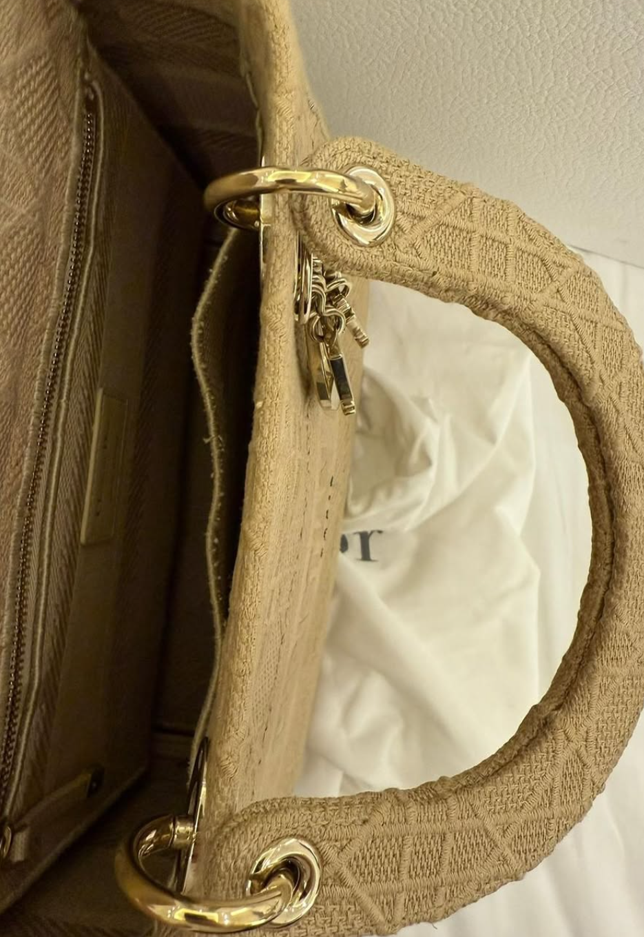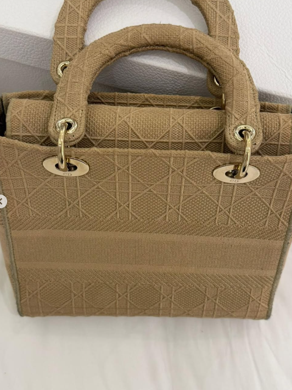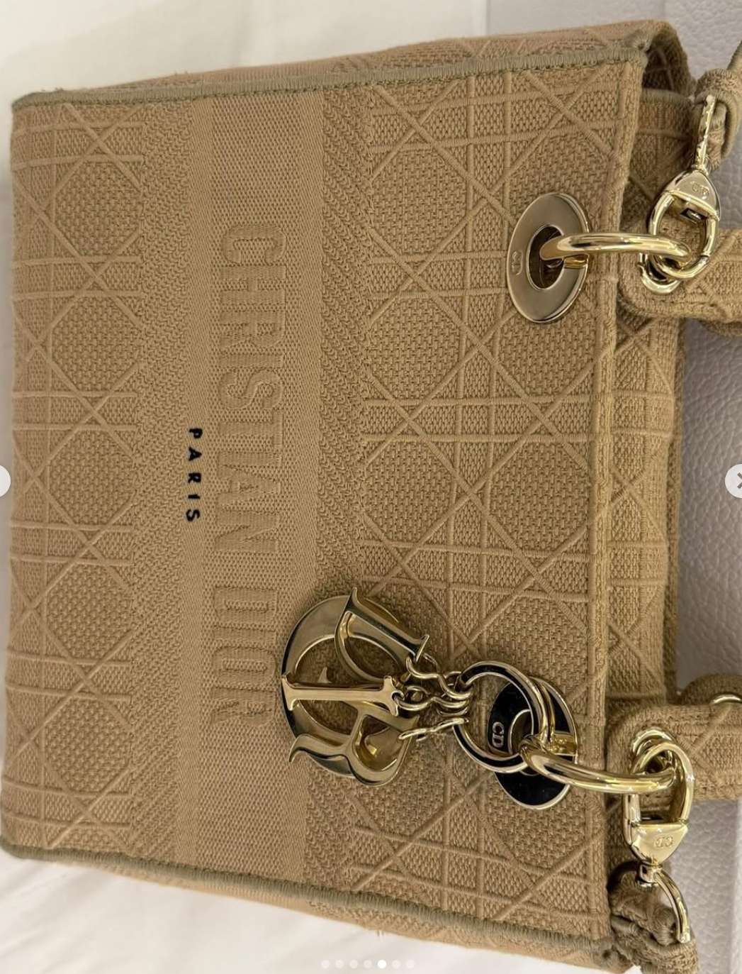 Dior Beige Cannage Embroidered Canvas Medium Lady D-Lite Tote
