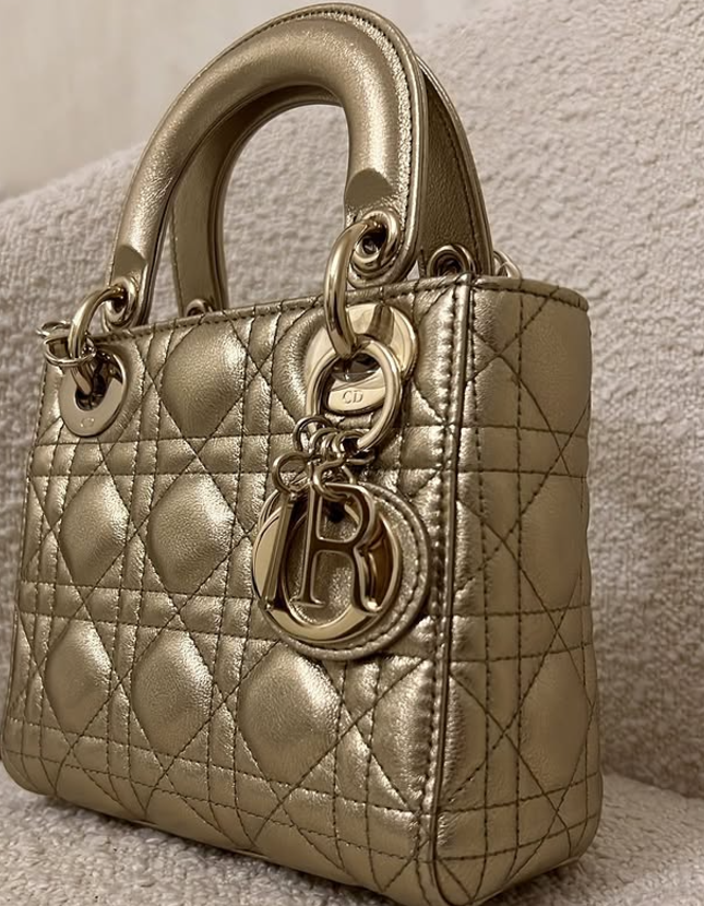 Dior Metallic Gold Leather Mini Lady Dior Tote