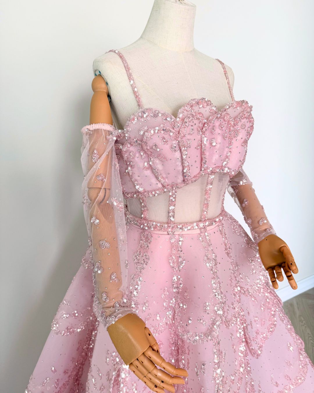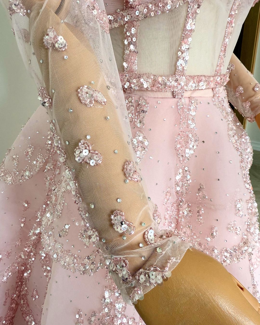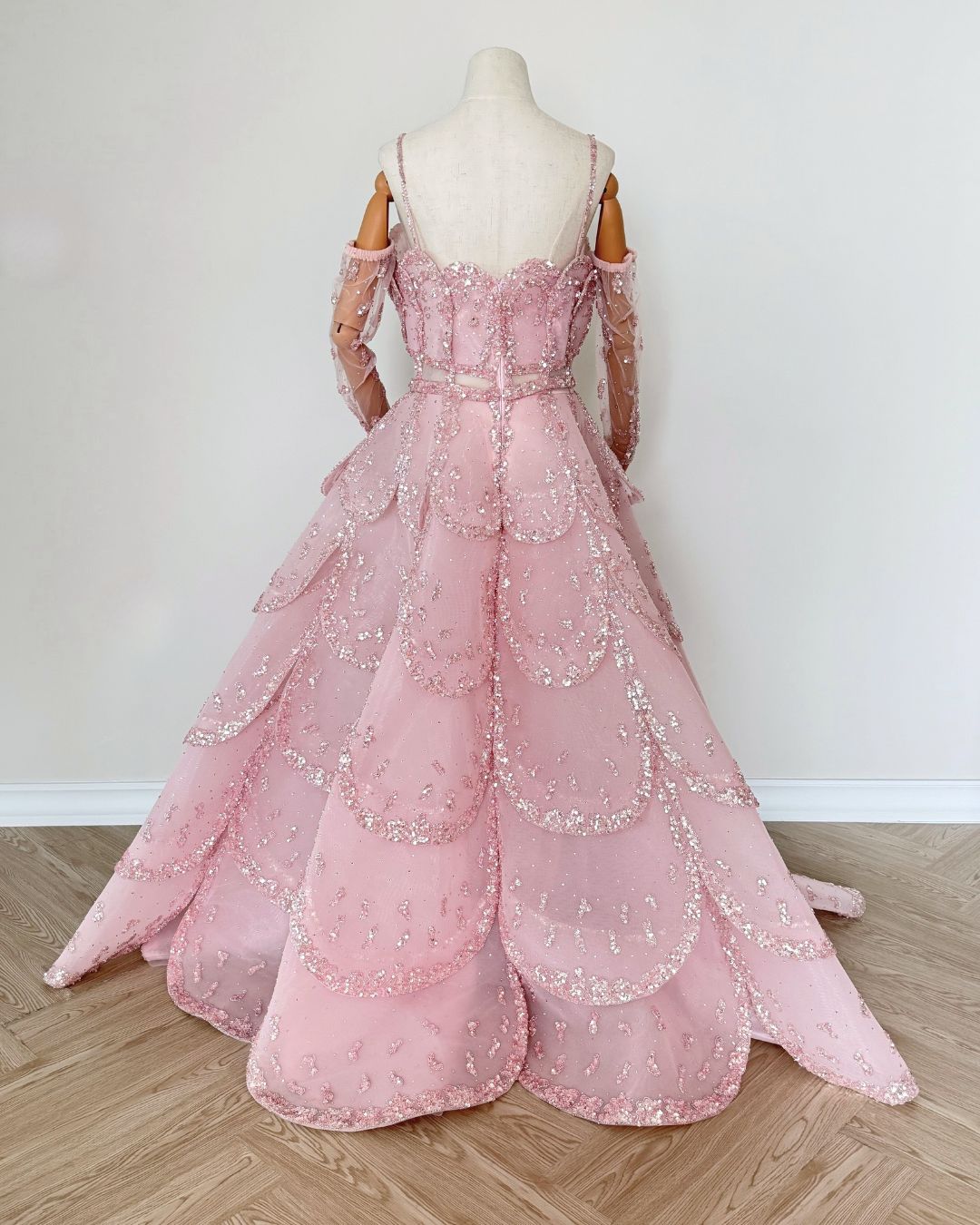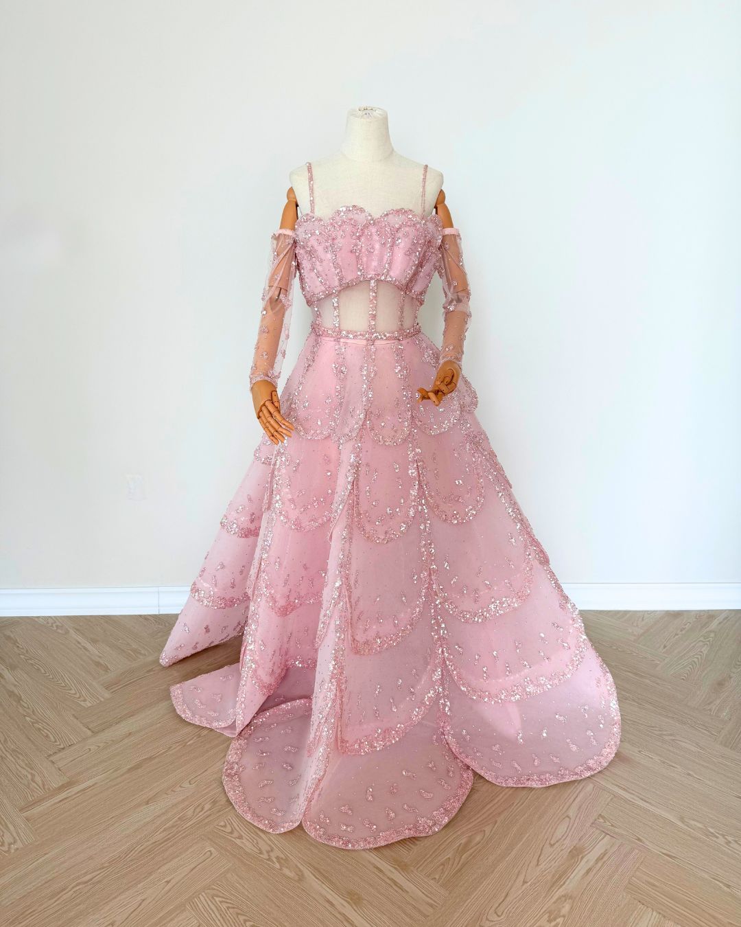 Evening Gown – Hand Embellished Size: Medium/Large Condition: Excellent Selling Price: 10,500 QAR Accessories: Dress and gloves