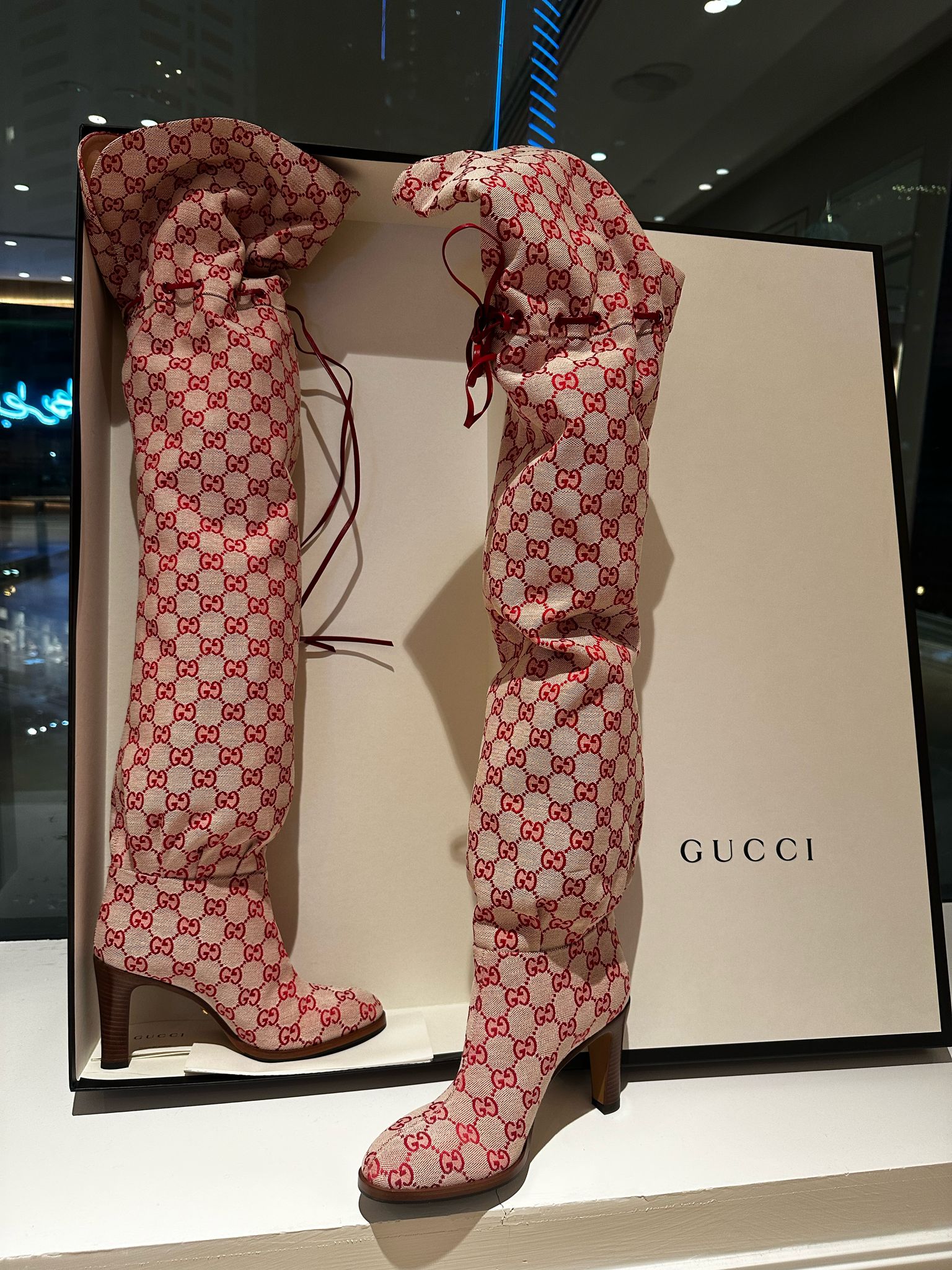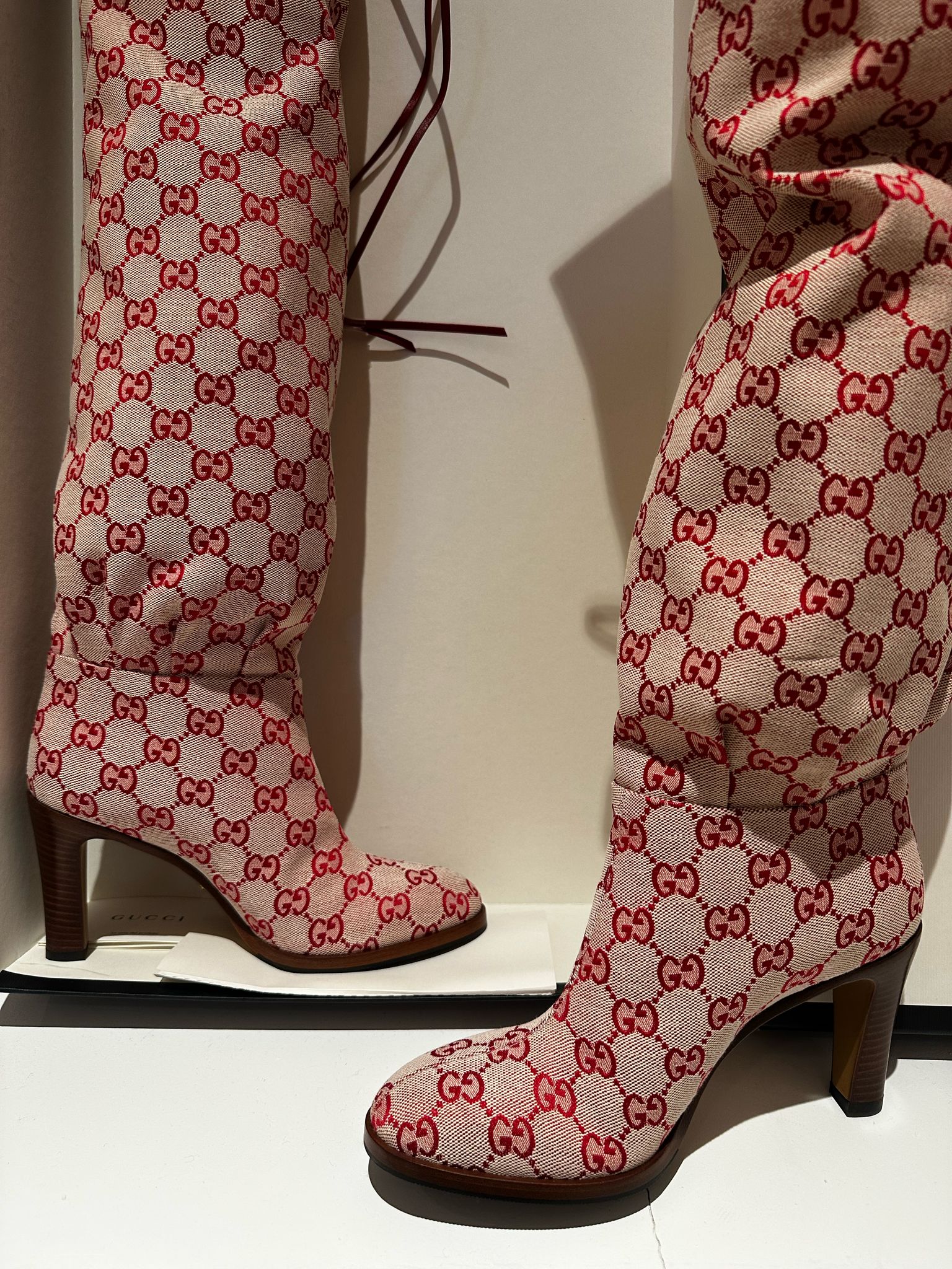Brand: Gucci Model Name: Over the Knees Boots GG Monogram Size: 38 Condition: New Purchase Price: 10,000 Selling Price: 5,500