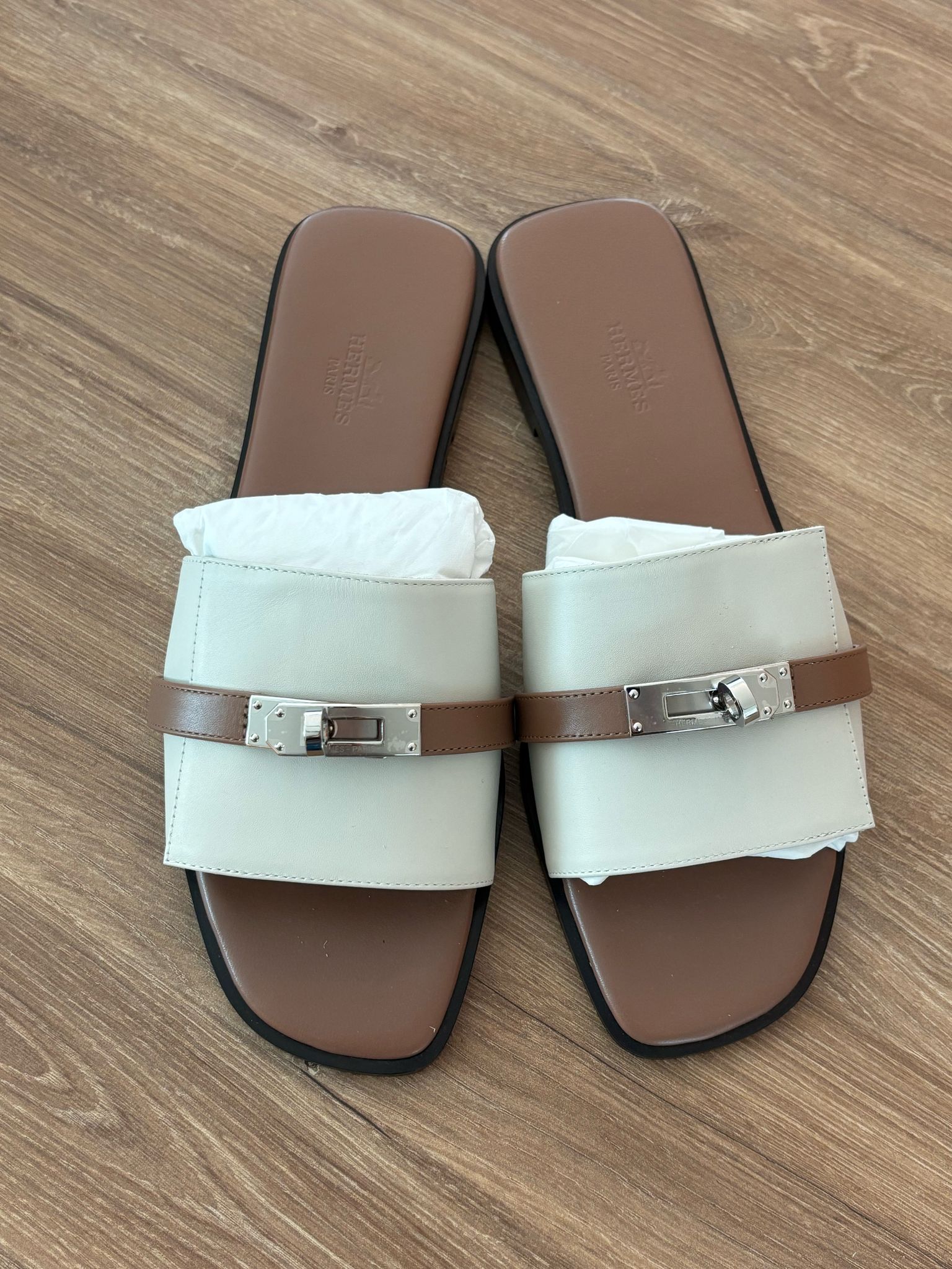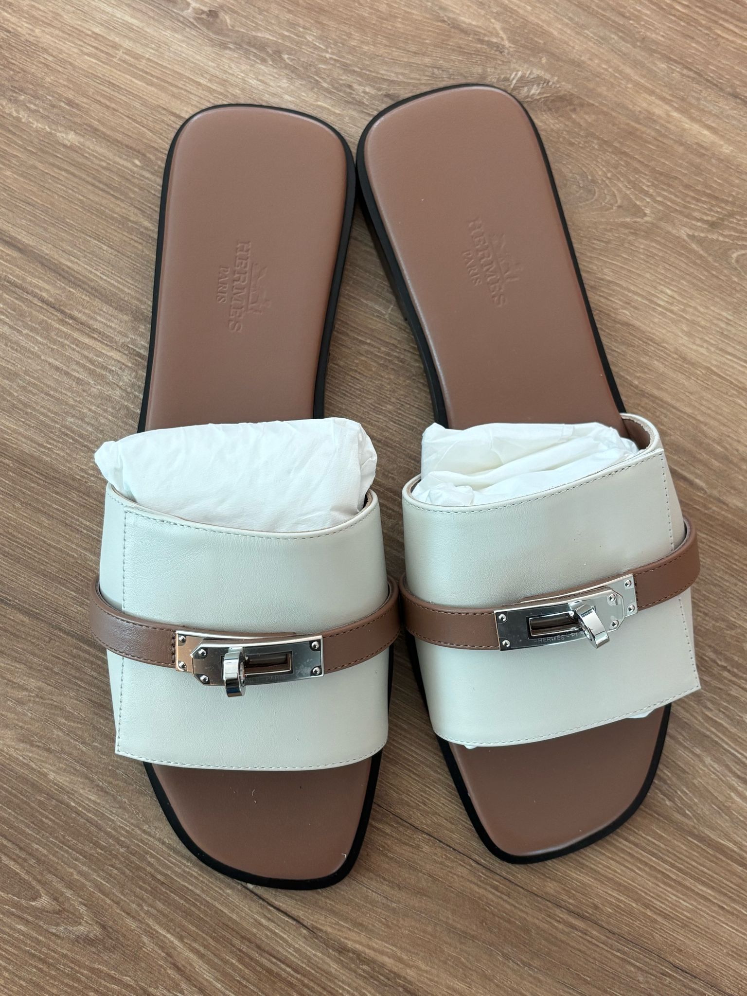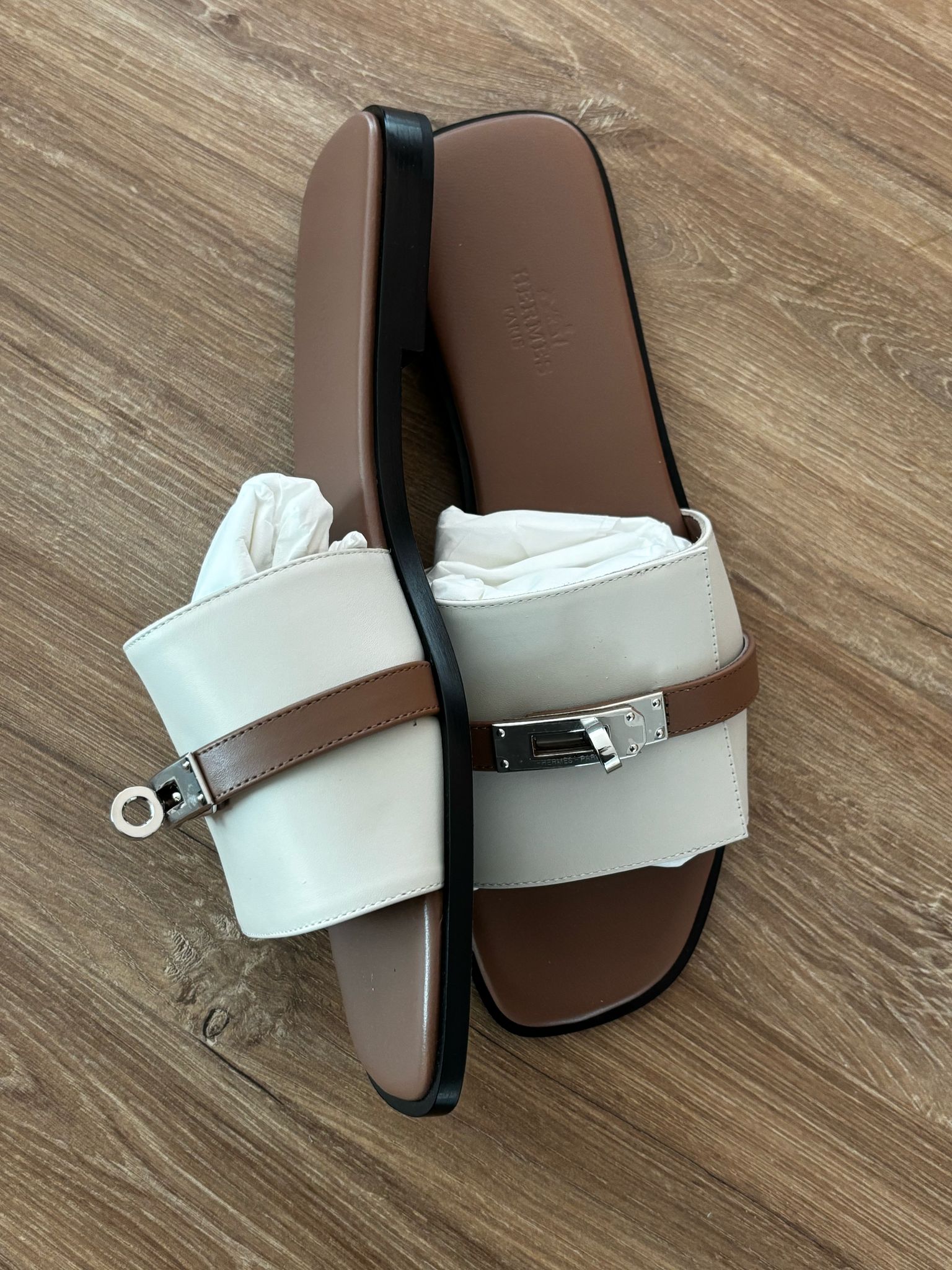 Hermès Giulia Sandal (Beige Glaise / Rose Perle)