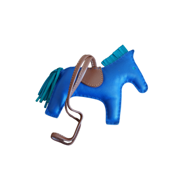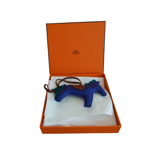 Model: Hermès Rodeo Bag Charm – Size MM Material: Soft Lambskin Leather (Swift Leather) Colors: Blue with Turquoise Green accents on the tail – A rare and attractive color combination. Condition: Used - In good condition. Accessories: Box and Original Dust Bag