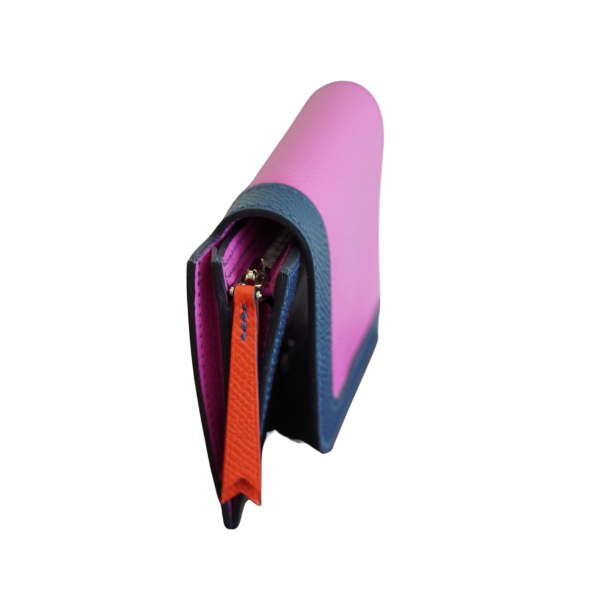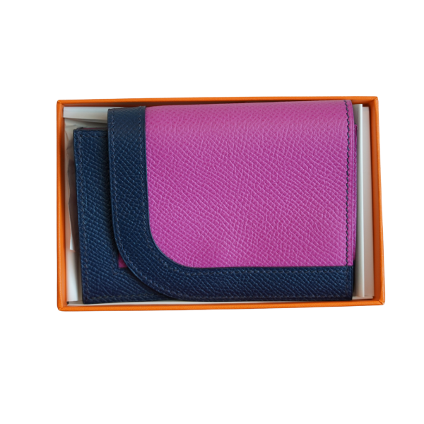 Type: Women's Wallet by Hermès Material: Genuine Leather Colors: Fuchsia Pink, Navy Blue, with a touch of Red Made in: France Serial Number: C MZ 010 NO Condition: Brand New – Never Used Accessories: Original Box