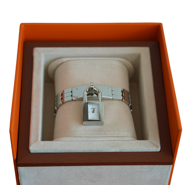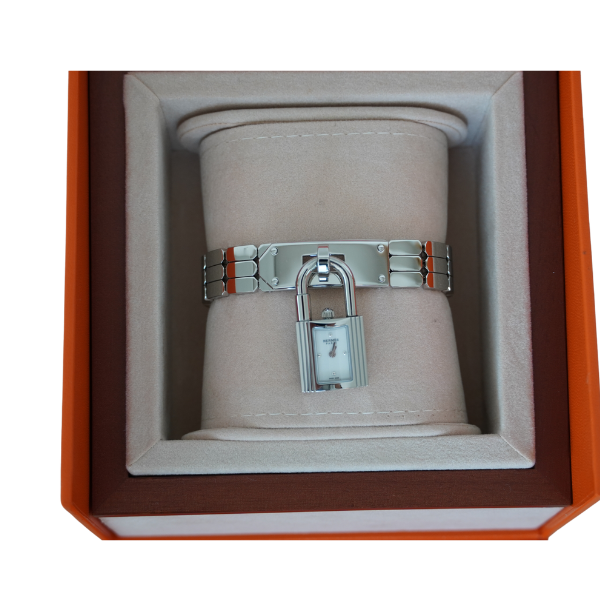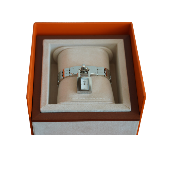 • Model: Hermès Kelly Watch KEA.110 • Material: Polished Stainless Steel • Movement: Swiss Quartz • Color: Silver • Serial Number: 3761092 • Reference Number: 056284 W37 • Country of Manufacture: France • Condition: Brand new, never used.
