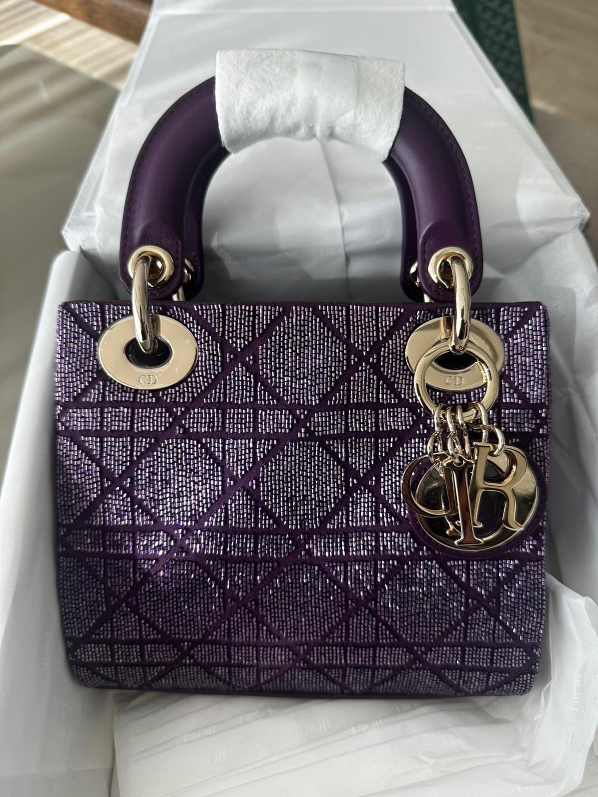 Lady Dior Small Bag Royal Purple Microbead-Embroidered Cotton with Cannage Motif Condition: Brand new, full set Original Price: 23,000 QAR Batra provides authenticity verification and international shipping. Please contact us before purchasing to ensure a secure transaction.