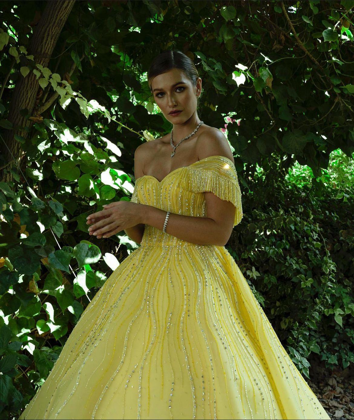 Layla Line Yellow Gown Condition: Excellent, worn once Purchase Price: 14,000 Selling Price: 8,499