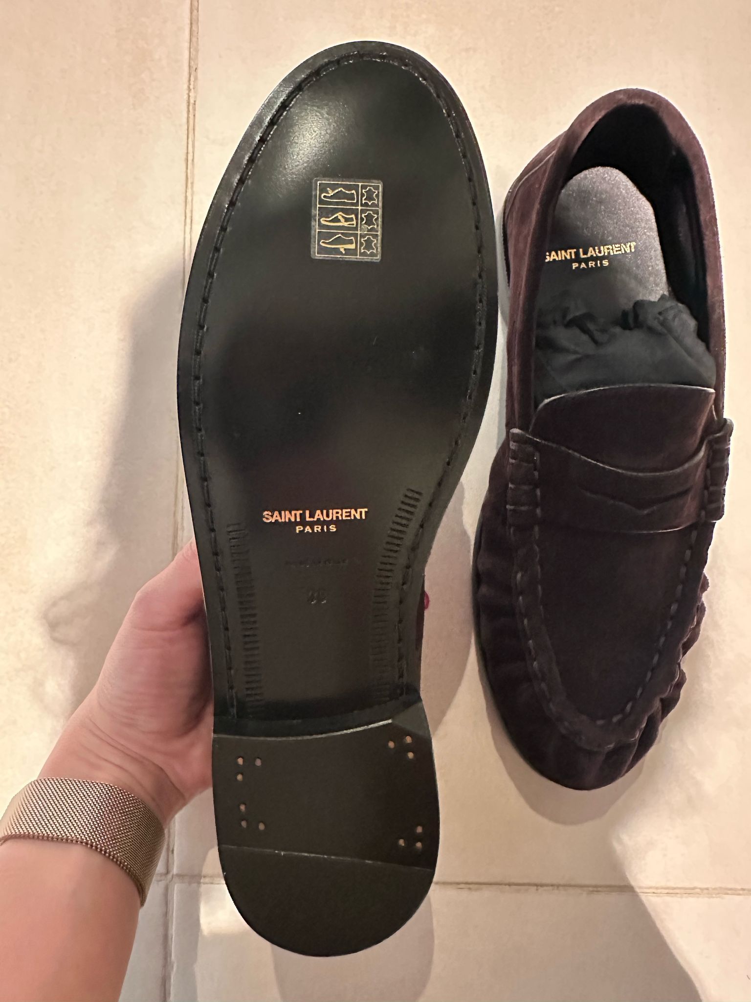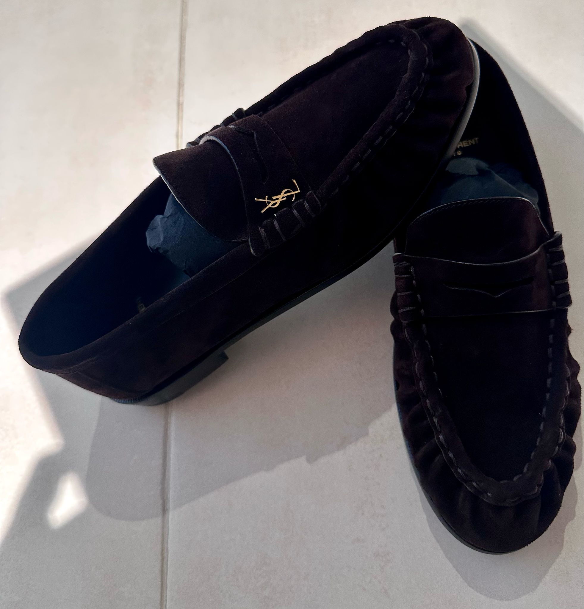Le Loafer Suede Penny Loafers – Saint Laurent Condition: Brand New Size: 39 Color: Brown Selling Price: 4,000 QAR