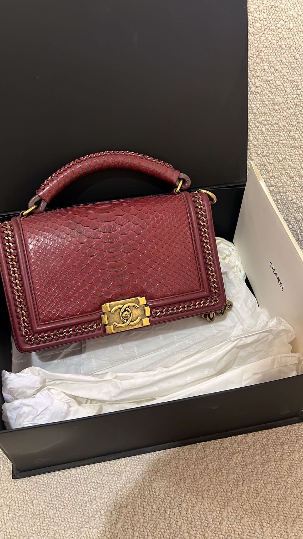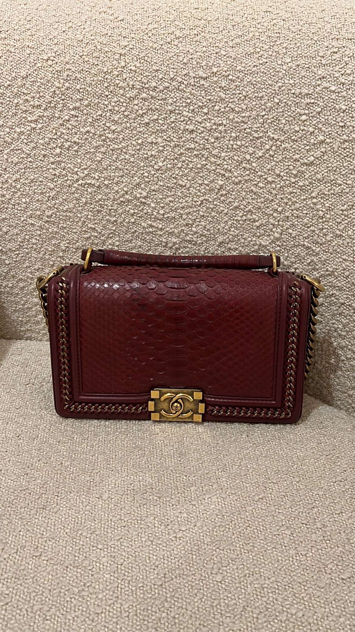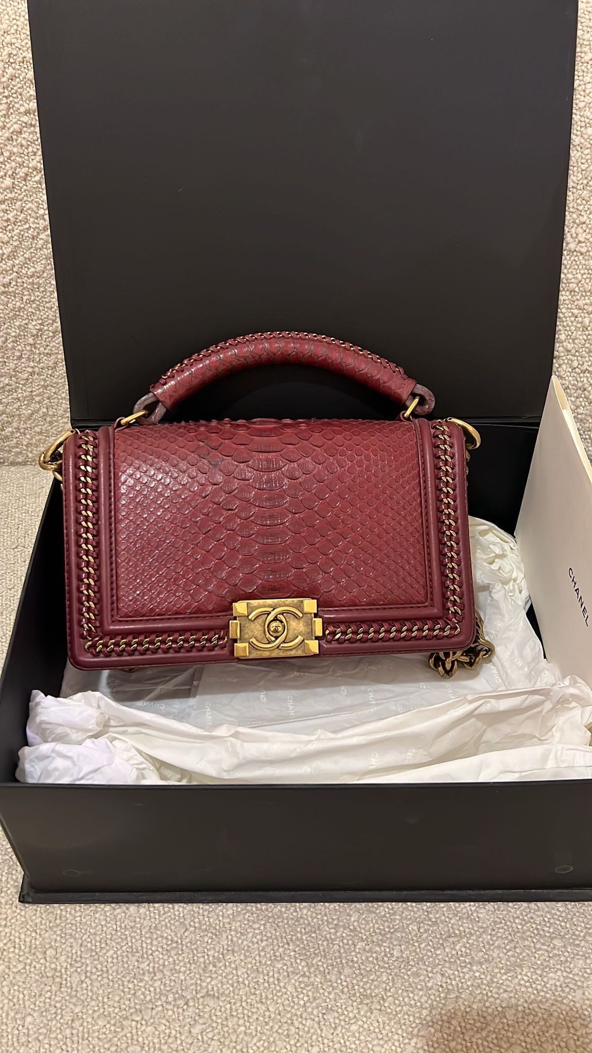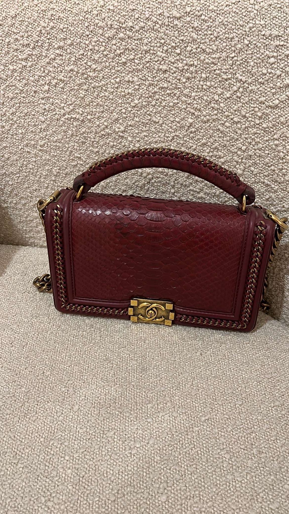 Limited Edition Chanel Chain Handle Boy Bag Condition: Excellent Purchase Price: 48,000 Accessories: Box and authenticity card Batra offers authenticity check and international shipping services. Please contact us before purchasing to ensure a safe transaction.