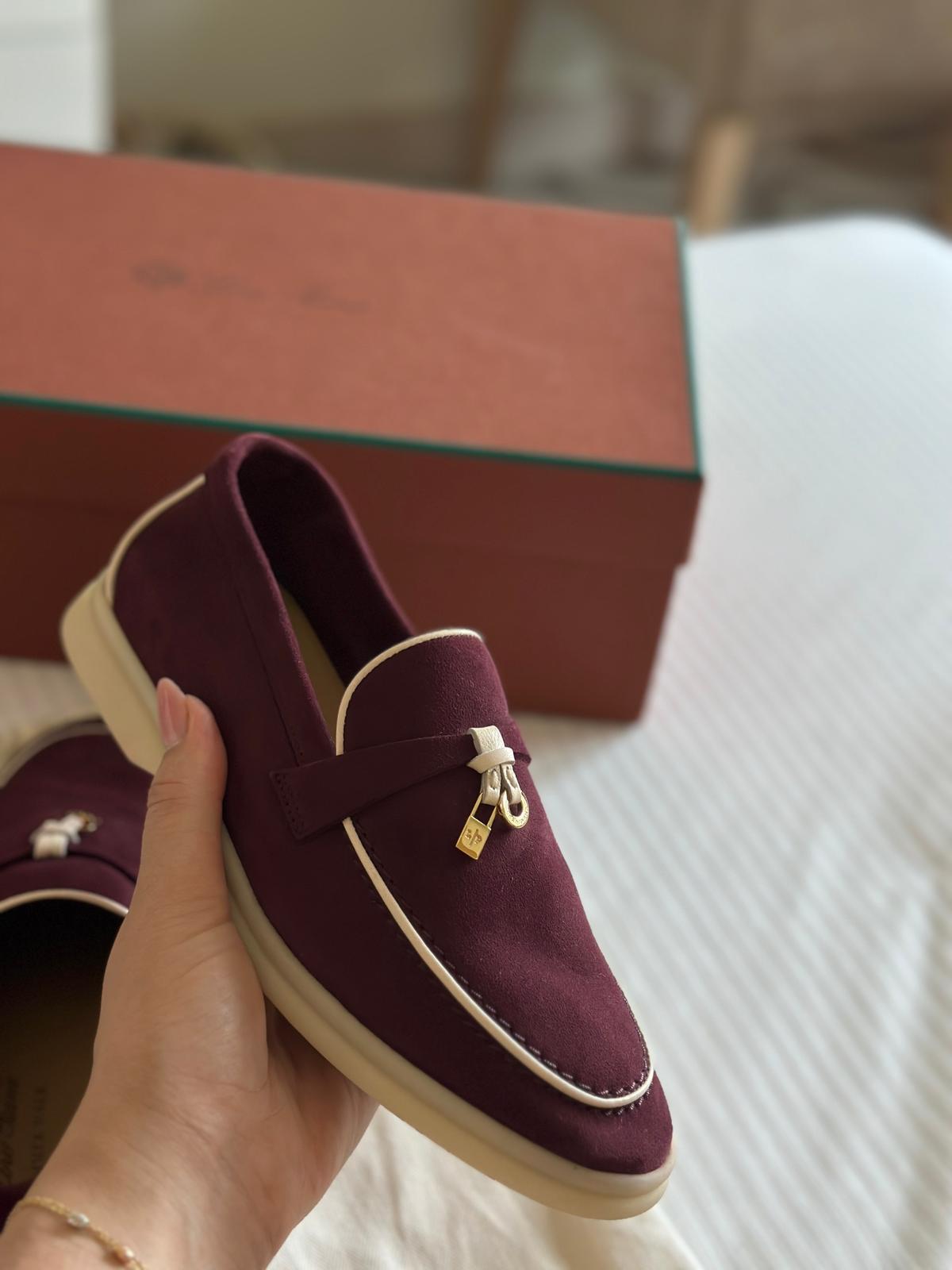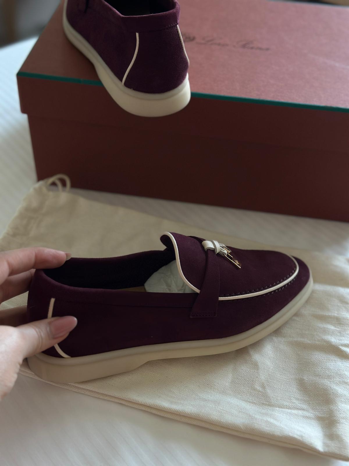 Loro Piana Summer Walks Maroon/White Condition: Excellent Size: 36 Original Price: 4,070 QAR Batra provides authenticity verification and international shipping. Please contact us before purchasing to ensure a secure transaction.