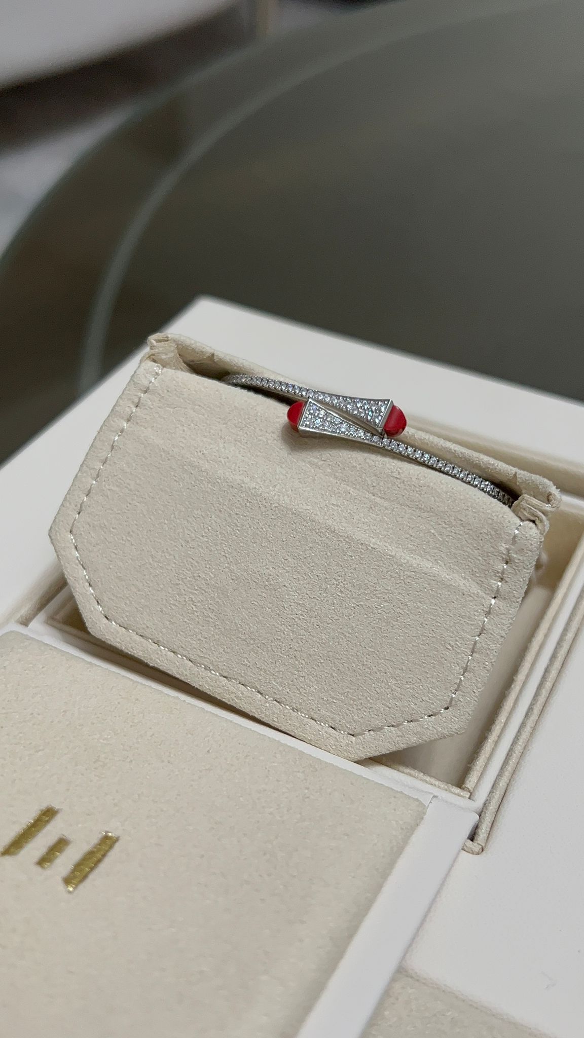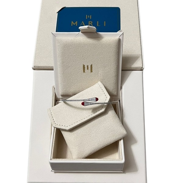 MARLI Cleo – Diamond Slip-On Bracelet with Red Agate, 18K White Gold