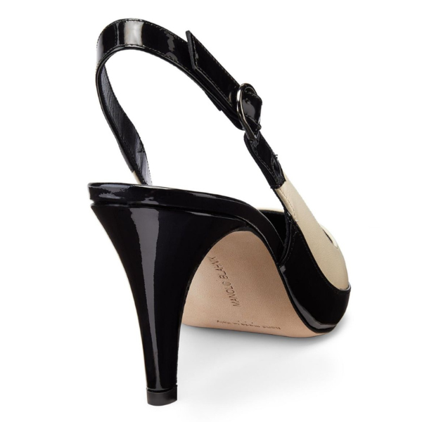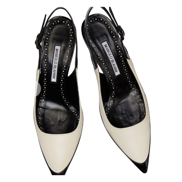 Manolo Blahnik Telemaca 70MM Leather Slingback Pumps Color: Black and Cream Size: 39.5 Condition: Excellent Original Price: QAR 3,150