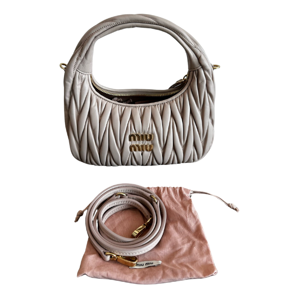 MIU MIU Mini Wander Hobo Shoulder Bag in Matelassé Leather Purchase Price: 10,500 Batra offers authenticity check and international shipping services. Please contact us before purchasing to ensure a secure transaction.