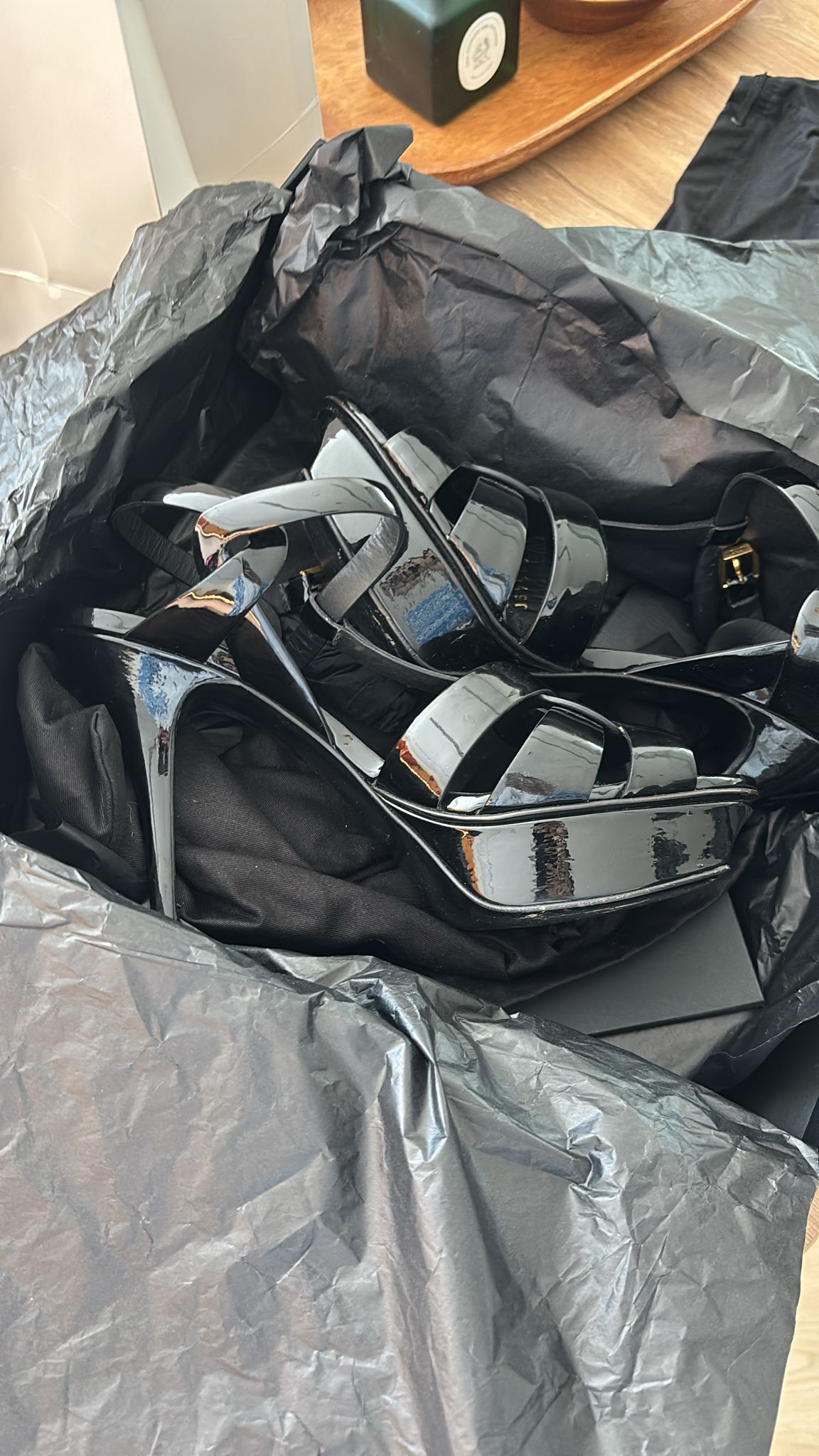 SAINT LAURENT Tribute platform sandals Color: Black Patent Leather Size: 38 Condition: Excellent Original Price: QAR 3,900 Includes: Full set