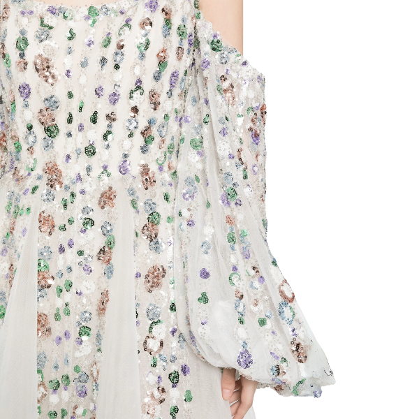 Designer: Saiid Kobeisy Dress type: Sequined Cold-Shoulder Tulle Dress Condition: Worn once Size: Small Purchase Price: 14,890 QAR Selling Price: 12,500 QAR (Negotiable)