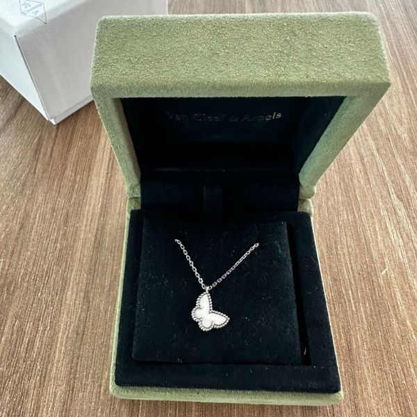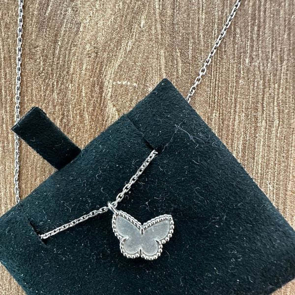 Van Cleef & Arpels Sweet Alhambra Butterfly Necklace – Excellent condition – Purchase price: QR 7,150 – Selling price: QR 6,800 – Purchased from: Van Cleef, Villaggio – Includes: Box, invoice, and booklet