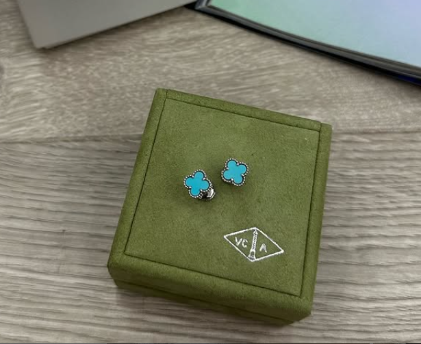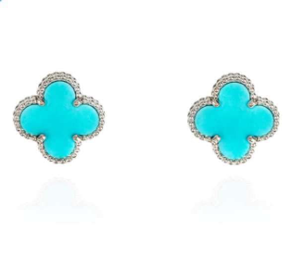 Van Cleef & Arpels White Gold Rare Turquoise Vintage Alhambra Earrings