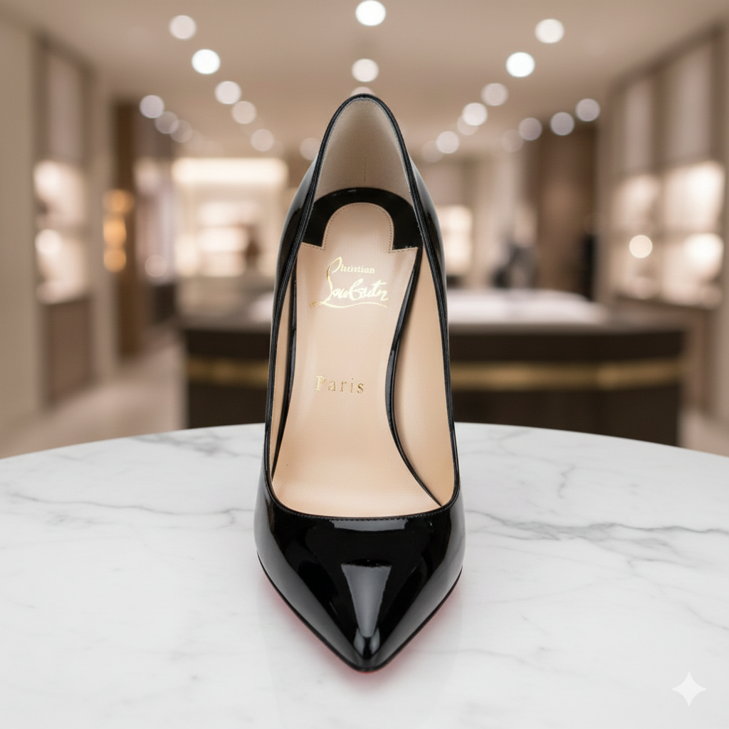 The So Kate 120 is one of Christian Louboutin's most famous and dramatic pump designs. Defined by its sharp, pointed toe and towering 120mm (4.7-inch) stiletto heel, it features a severe arch that lengthens the leg, creating an incredibly elegant silhouette. It is crafted in various luxurious materials (like patent leather, nappa, or suede) and is instantly recognized globally by the signature bright red lacquer sole.